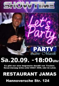 StartÜber UnsGalerieSpeisekarteEventsReservierungKontakt Slide 1JAMASGriechische Spezialitäten RESERVIERUNG Das RESTAURANT Bei uns können Sie Ihren Aufenthalt in mediterraner Atmosphäre genießen und mit uns ein Stück Griechenland entdecken.Wir hoffen, dass Sie sich bei uns wohlfühlen werden und freuen uns auch jederzeit über Ihre Fragen, Wüsche oder Anregungen!Das Team vom Restaurant Jamas freut sich auf Sie! RESERVIEREN Galerie DES RESTAURANTS MEHR ANZEIGEN Unsere SPEISEKARTE PDF DOWNLOAD Reservieren für Ihre Events GEBURTSTAGE EVENTS Live Musik KOMMENDE EVENTS HOCHZEITEN Termine für Veranstaltungen Live Musik Sa. 20.09. um 18.00 Uhr Reservieren Liebe Gäste! Bitte geben Sie Ihre Bestellung Telefonisch auf Unter folgender Nummer können Sie Ihren Tisch reservieren: 05021 49 09 Wir akzeptieren Kreditkarten aller führenden Unternehmen. Bitte keine Schecks. ANFAHRT
